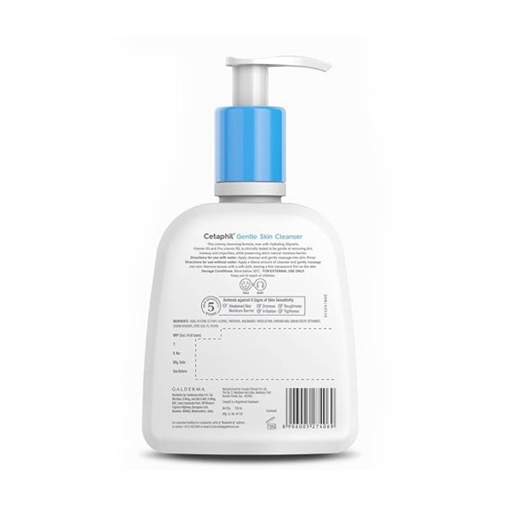 The Cetaphil Gentle Skin Cleanser 250 ml is a must-have for every skin type, even sensitive skin, and can upgrade your daily skincare routine. Clinically tested and dermatology-recommended, it sweeps away dirt, makeup, and impurities while restoring and hydrating your skin's natural moisture barrier! It is designed to protect sensitive skin from irritation when starting your day or as the last step of your routine to wash it off with a fresh scent. It always has a healing and soothing effect because it has ingredients that have been shown to work in clinical trials, such as Panthenol, vitamin B5, Pro-Vitamin B5, and humectant Glycerin. The non-foaming, soap-free formulation is excellent but mild, leaving the skin feeling clean, soft, and nourished. This cleanser hydrates while it cleanses and provides moisture to the areas of your skin that need it most while, at the same time, improving the skin's resistance against environmental aggressors. This versatile cleanser can be used with or without water, providing convenience tailored to your lifestyle. For a gentle cleaning, lightly wipe the surface with a cloth. For a classic, refreshing cleanse, rinse the surface. Its fragrance-free and hypoallergenic formulation prevents red marks and irritations, making it an ideal choice for even the most sensitive skin types. Cetaphil Gentle Skin Cleanser 250 ml is clean beauty, as it is made with no toxic chemicals and is held to the highest standards of skin care. This product is the ideal addition to your skincare arsenal to give your skin the nourishing care it needs. It locks in hydration, cleans, and calms your complexion after each use to guarantee ultimate comfort and long-lasting skin health.
