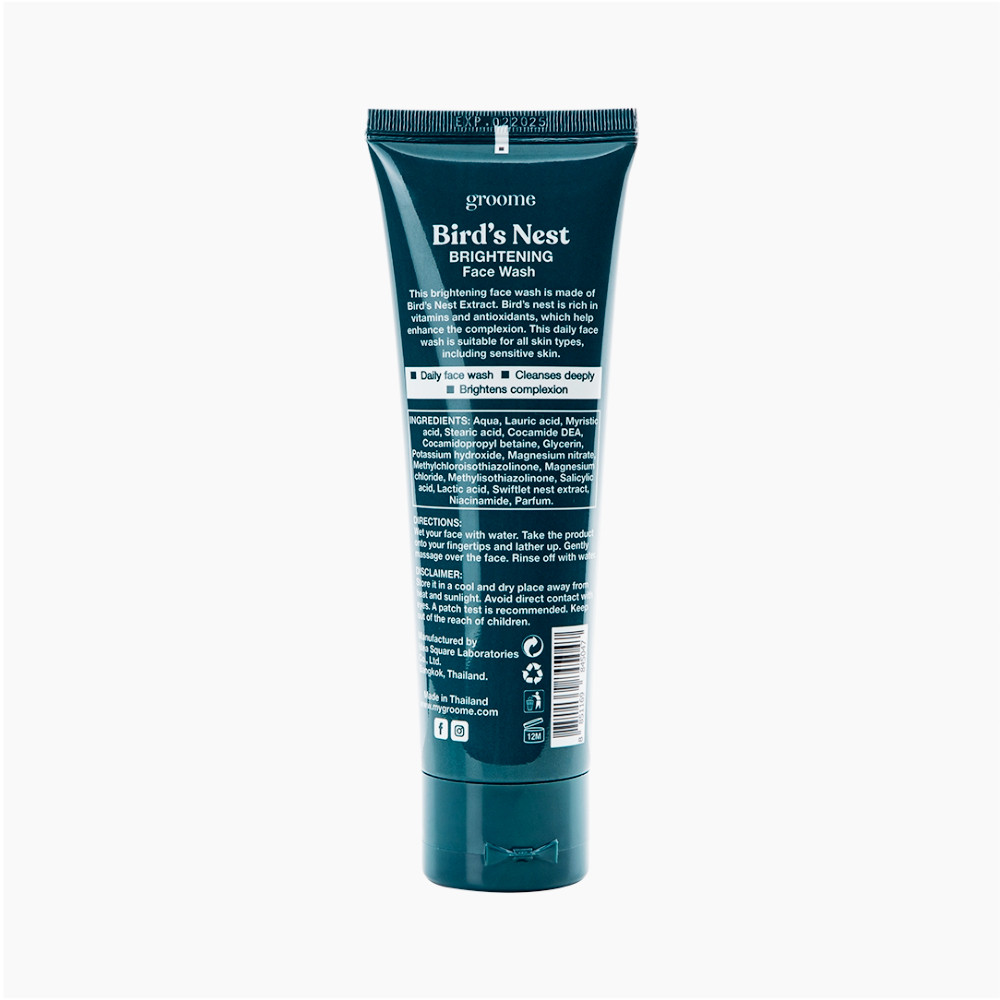 Groome Bird's Nest Brightening Face Wash is unique. Bird's nest extract is nutritious. This facial cleanser is thorough. It efficiently cleans dirt, oil, and pollutants. Gentle formula for sensitive skin. The skin feels smooth and silky. Regular usage improves skin texture. Reduces dullness and brightens skin. Skin is intensively hydrated by bird's nest extract. It keeps moisture for hours. This face wash fits all skin types. Parabens and harsh chemicals are absent. Dermatologist-tested for safety. This cream revives skin shine. Dead skin cells come off easily. Lightweight texture lathers nicely. It rinses clean. After using Groome Face Wash, you feel refreshed. Rich in vitamins and minerals. The substances heal and rejuvenate skin. It gradually diminishes fine wrinkles and dark spots. A calming smell enhances the experience. It relaxes and cleanses. Daily use yields noticeable effects. Preparing the skin for various skincare products. Brightening boosts confidence. It's essential for skincare. Good for morning and night. Packing is easy and portable. Regular usage prolongs its lifespan. The 100ml fits in your luggage effortlessly. Groome Face Wash rejuvenates. It also removes makeup. Eco-friendly and cruelty-free. Natural components make it safe. It hydrates skin instantly. Lightweight composition absorbs well. The skin stays moisturized for hours. Groome Bird's Nest Brightening Face Wash brightens skin. It improves skin look. The product suits dry and oily skin. Stops outbreaks and irritation. Cleansing regularly avoids blocked pores. Healthy skin benefits from thorough cleansing. Gentle exfoliation is ideal for everyday usage. Fresh, bright skin appears instantaneously. Try it now for noticeable results.