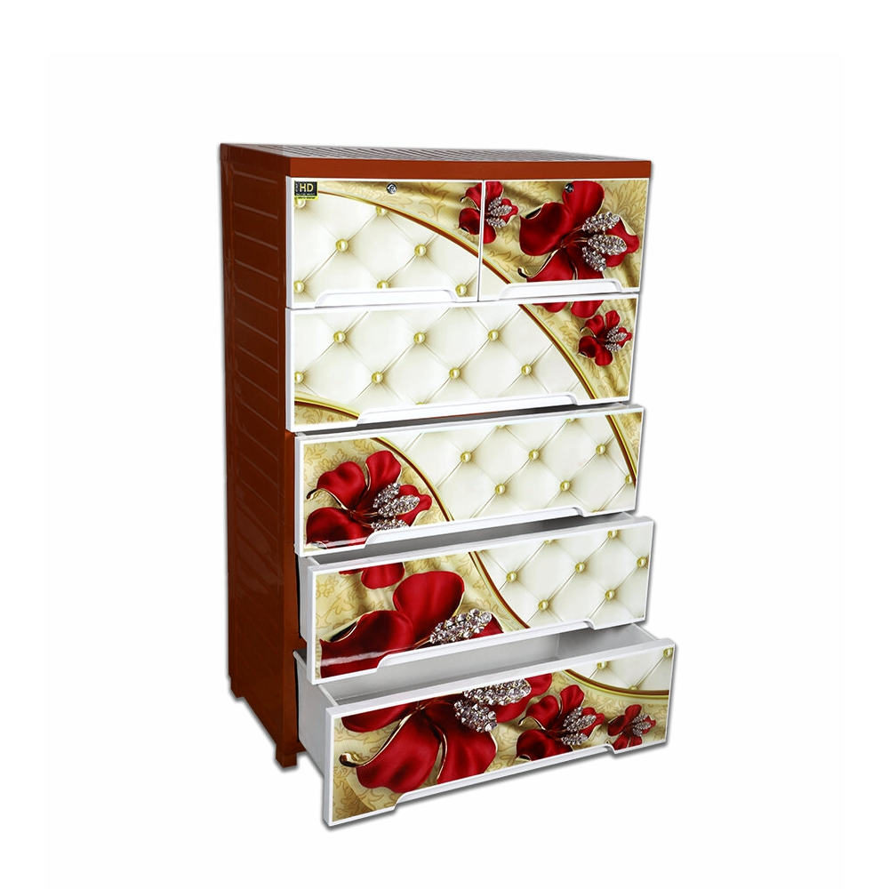 Are you feeling stressed because of a messy space? Say goodbye to the mess and stay organized with the Wardrobe HD Print Double 5D Golden Rose TEL. Blending both elegance and functionality, this wardrobe merges effortlessly into your home with a golden rose print, serving as a decorative piece as well. Made with high-quality ABS and PP materials, this wardrobe is made to last. It has a floral print with scratch-resistant HD so it would outlast looking good, and UV and insect repellent protects its contents. The double door with various compartments gives you ample space for clothes, yards, linens, toys, etc., while also keeping them secured and organised. Designed for modern living, this wardrobe is simple to assemble and is lightweight. The compact vertical design allows it to fit in places with tight floor space, making it the perfect addition to your bedroom, office, or kids room. It is incredibly tough, functional, and chic; it is the ideal storage option for modern homes.