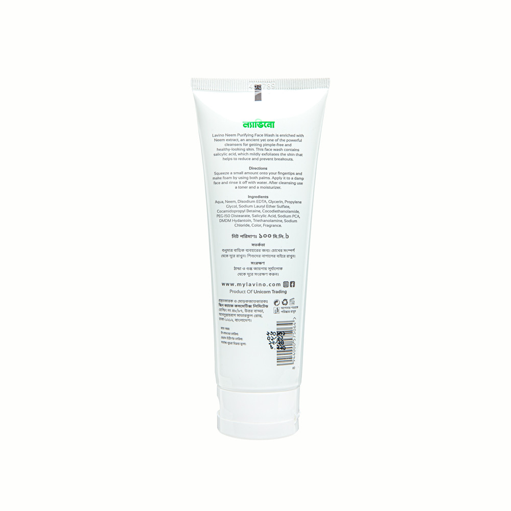 The latest price of Lavino Neem Purifying Face Wash With 0.5% Salicylic Acid 100ml is ৳205 in Bangladesh. You can purchase the Lavino Neem Purifying Face Wash With 0.5% Salicylic Acid 100ml in Bangladesh at the best price from our website or any of our stores.
