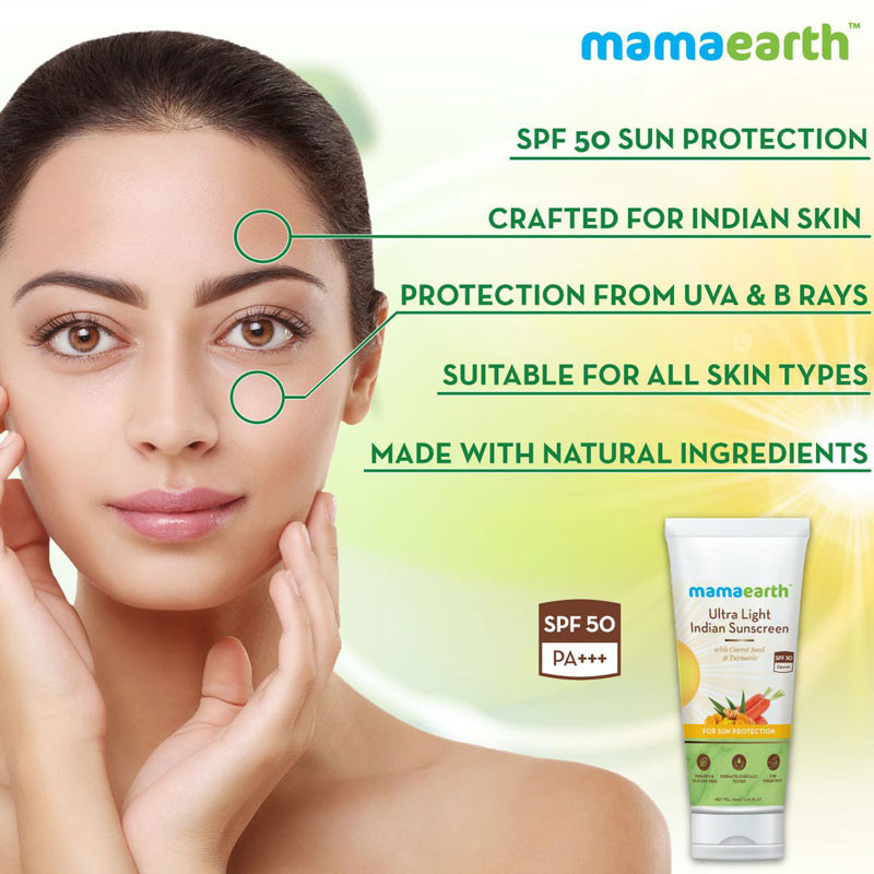 Ultra-Light Indian Sunscreen SPF50 PA+++ is a ground-breaking skincare product fit for the modern Indian surroundings. With great resistance against UVB and UVA radiation, this sunscreen maintains your skin youthful and healthy. Its lightweight composition blends nicely with your skin without leaving greasy residue. With a high SPF of 50, the sunscreen guarantees good resistance against strong sun exposure. The PA+++ rating offers a layer of superior protection against UVA radiation, which induces sunburn and early ageing. This makes it the ideal fit for all skin types, especially sensitive skin.Its non-comedogenic properties aid to open clogged pores, therefore reducing the acne and breakout risk. Its fast-absorbing nature makes it ideal for regular usage even under makeup. Aloe vera and green tea extracts among other natural components in the sunscreen help to calm and feed your skin. These elements combat free radicals and hydrate your skin all during the day. For swimming among other outdoor activities, the sunscreen is perfect as it is water-resistant. Though it provides great protection, the recipe is simple and free of harmful components such parabens, sulfates, and synthetic smells. Dermatologically tested, it's safe for any age. The solution also covers typical skin issues including dullness, hyperpigmentation, and tanning. Regular application helps to keep skin tone even and to provide a brilliant complexion. The travel-friendly container guarantees you may carry it wherever without thinking about leaks or spills. Designed to fit Indian skin tone and temperature, Ultra-Light Indian Sunscreen SPF50 PA+++ provides consistent protection free from white cast. Vegan and cruelty-free, it fits ethical and environmental requirements for beauty. This sunscreen covers you whether your trip is to the beach or for a long day. This one all-in-one solution guarantees that your skin remains bright, protected, and healthy. Ultra-Light Indian Sunscreen SPF50 PA+++ will let you experience perfect skincare. Goodbye to sun damage and welcome perfect skin.