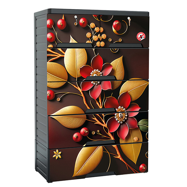 RFL Wardrobe Double 5D KD Deluxe - Red Love This sleek and durable wardrobe comes with high-quality ABS and PP materials. Its wardrobe is insect-repellent, UV-resistant, and protects your clothes from damage while still looking neat and shiny. This wardrobe is compact and ideal for your bedroom, office, or kids' room. This modular wardrobe provides ample space for organizing clothes, and its knock-down assembly design enables quick and easy setup. For those who want a space-saving wardrobe or a low-cost wooden one, this product can enhance your space with its functional beauty.