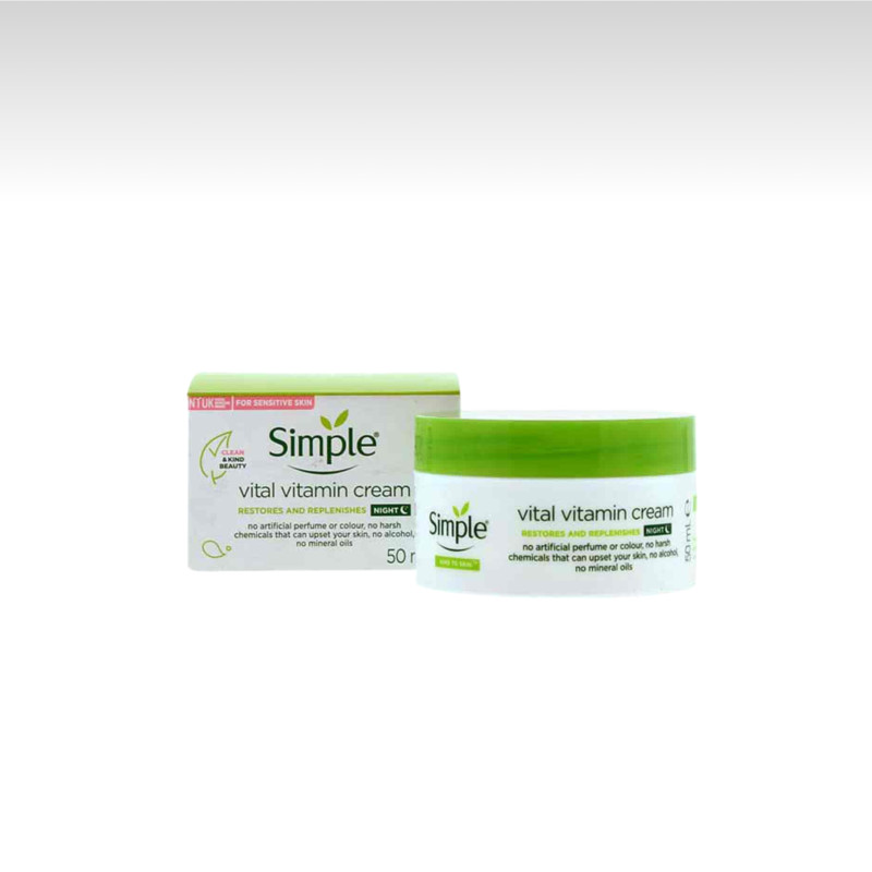 The latest price of Simple Kind To Vital Vitamin night Cream 50ml is ৳590 in Bangladesh. You can purchase the Simple Kind To Vital Vitamin night Cream 50ml in Bangladesh at the best price from our website or any of our stores.