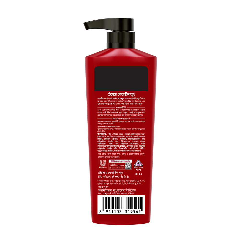 The latest price of Tresemme Shampoo Keratin Smooth (580ml) is ৳670 in Bangladesh. You can purchase the Tresemme Shampoo Keratin Smooth (580ml) in Bangladesh at the best price from our website or any of our stores.